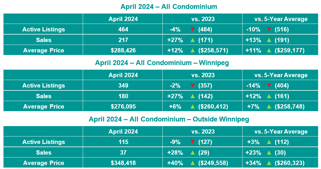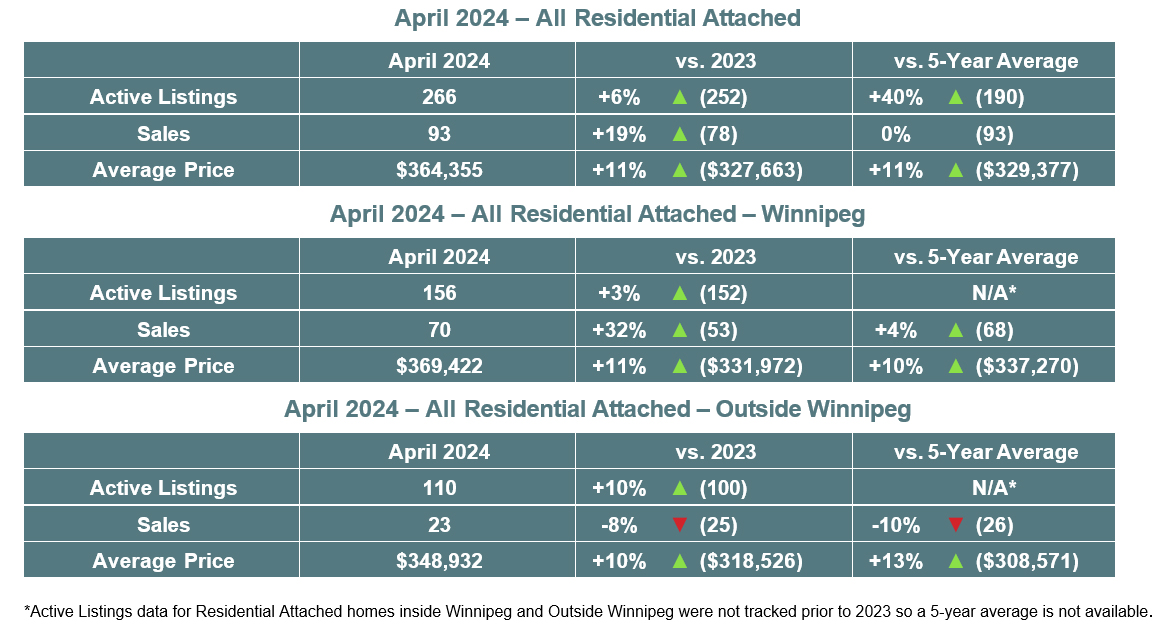 “For the first time since June of 2022 and after a 21 consecutive month trend, all MLS® sales in the Winnipeg Regional Real Estate Board’s market region rose above the 5-year average,” said Daphne Shepherd, 2024-2025 President of the Winnipeg Regional Real Estate Board. “From an MLS® sales perspective, this represents the 3rd best April on record and narrowly misses the 2nd best April in 2022, by 35 sales. Aside from a decrease in active condominium listings, all three of the main property types of residential detached, condominium and residential attached homes were at or above last year and the 5-year averages for active listings, new listings, MLS® sales, dollar volume and average prices.”