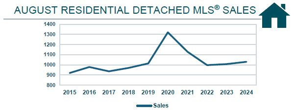 Winnipeg, September 6, 2024 – August saw All MLS® sales of 1,483 up 7% over last year, active MLS® listings of 4,015 down 5% and total MLS® dollar volume of $549 million up 9%. Residential detached MLS® sales of 1,030 were up 2% while the average price of $415,717 was up 4% when compared to last August. Condominium MLS® sales of 210 were up 8% and the average price of $270,575 down 3% over last August.