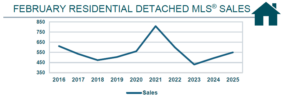 Winnipeg, March 7, 2025 – February saw All MLS® sales of 885 up 11% over February 2024, and 2% below the 5-year average. Active MLS® listings of 2,787 were down 15% from last February and total MLS® dollar volume of over $348 million up 27% from February 2024. Residential detached MLS® sales of 550 were up 11% while the average price of $458,064 was up 14% when compared to February 2024. Condominium MLS® sales of 156 were up 19% and the average price of $274,036 up 2% over last February.