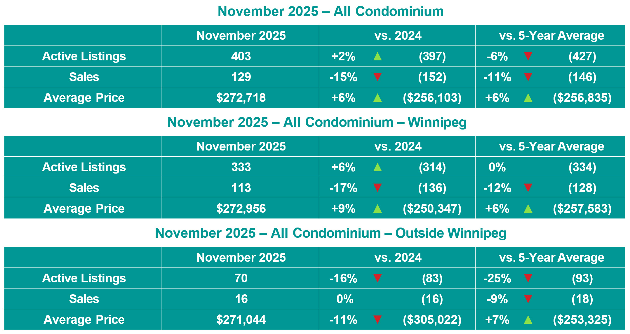 “Year-to-date All MLS® sales are the third highest on record and dollar volume is the second highest while residential detached and condominium prices set a new November record,” said Michael Froese, 2025-2026 President of the Winnipeg Regional Real Estate Board. “Condominium average prices rose versus last year and set a new November record while this is the first month in 2025 when residential detached average prices declined versus 2024 and did not set a monthly average price record. November’s real estate market saw declines in All MLS® sales and dollar volume while MLS® sales, dollar volume and average prices declined for residential detached homes.”